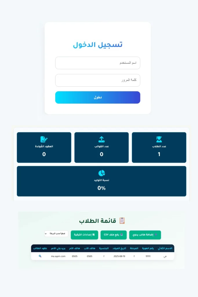 - دعم القوالب الجاهزة والمتغيرة حسب المرحلة أو نوع العقد.